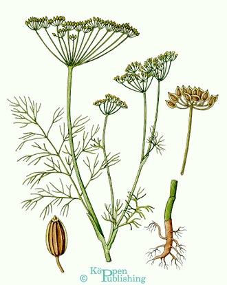 Die Samen enthalten 3 - 4 % ätherisches Öl, davon Alpha-Pinen, Alpha-Phellandren, Beta-Phellandren, Limonen.
