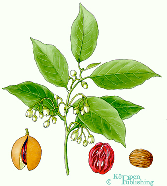 Muskatnuß - Myristica argentea, M. fragrans, Muskatnußgewächse, w