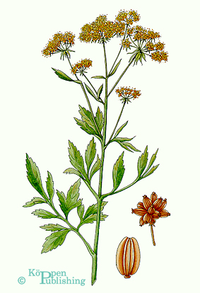 Früchte : längs gerippte Doppelspaltfrüchte, ähneln dem Kümmel.