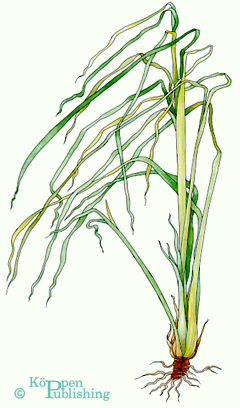 Stengel : scharfkantig, grün; sieht wie eine Frühlingszwiebel aus.
